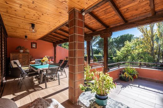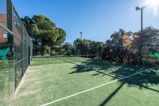Im Herzen einer der exklusivsten, sichersten und ruhigsten Wohnanlagen der Sierra de Madrid, Parquelagos, befindet sich dieses prächtige dreistöckige Reihenhaus, das durch seine Großzügigkeit und sorgfältige Ausstattung besticht. Mit 407 m² Wohnfläche auf einem großzügigen 520 m² Grundstück bietet die Immobilie die perfekte Balance zwischen Komfort, Privatsphäre und Bereichen, die sowohl für die Familie als auch für Gäste ideal gestaltet sind.