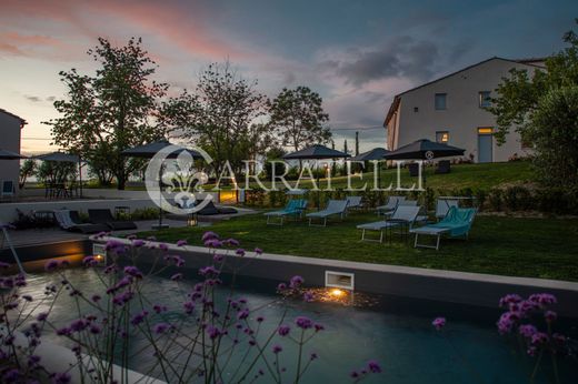 Das Anwesen kann als privater Wohnsitz mit hohem Prestige und als perfekte Unterkunft auf hohem Niveau aufgewertet werden. Das Vorhandensein von produktiven Weinbergen und Olivenhainen bietet auch die Möglichkeit, landwirtschaftliche und weinbauliche Aktivitäten zu integrieren und ein komplettes unternehmerisches Projekt zu schaffen. Die Außenanlagen und der Swimmingpool mit Panoramablick machen den Weiler auch ideal für exklusive Veranstaltungen, Hochzeiten, Retreats und Erlebnisaufenthalte inmitten der Natur.