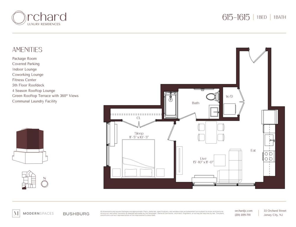 Luxus-Apartment mit 1 Schlafzimmer zu vermieten in Jersey City, USA