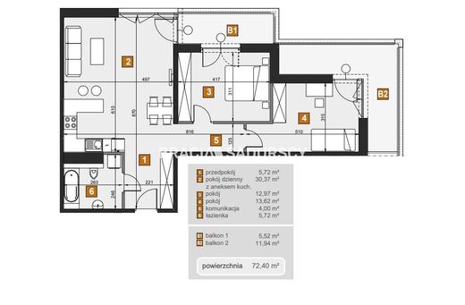 Luxus-Apartment mit 72 m2 zu verkaufen in Babińskiego, Krakau, Kraków, Woiwodschaft Kleinpolen