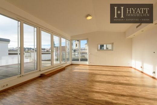 Dieses außergewöhnliche Penthouse vereint großzügiges Wohnen, moderne Ausstattung und urbanes Lebensgefühl auf höchstem Niveau. Auf rund 122 m² Wohnfläche präsentiert sich eine durchdachte Raumaufteilung, ergänzt durch zwei sonnige Dachterrassen mit insgesamt ca. 36 m², die einen traumhaften Blick über die Dächer der Stadt sowie auf die eindrucksvolle Kirche in der Nachbarschaft bieten.