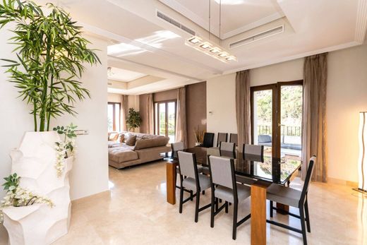 Im Herzen von Benahavís, wo Eleganz auf Komfort trifft, liegt diese atemberaubende freistehende Villa in der prestigeträchtigen Wohnanlage des Benahavis Hills Country Club. Nur eine kurze Autofahrt vom charmanten Dorf entfernt bietet diese exklusive Residenz nicht nur ein Zuhause, sondern auch einen Zufluchtsort voller Eleganz und Ruhe, der 24 Stunden am Tag für Ihren Seelenfrieden bewacht wird. Diese geräumige Villa erstreckt sich über vier sorgfältig gestaltete Etagen und verfügt über einen Aufzug, der einen mühelosen Zugang zu jeder Ebene ermöglicht. Der Innenraum ist ein Beweis für Stil und Funktionalität und verfügt über einen großzügigen Wohn- und Essbereich, der nahtlos in eine voll ausgestattete Küche übergeht. Ein separater Waschraum verleiht der Opulenz einen Hauch von Zweckmäßigkeit.