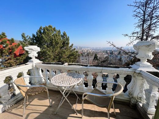 Diese stilvolle Villa aus den 1930er-Jahren befindet sich an der Südseite des Sas-hegy (Adlerberg) in einer der wertvollsten und einzigartigsten Wohnlagen Budas – in unmittelbarer Nähe zum Naturschutzgebiet. Die dreigeschossige Liegenschaft (zzgl. straßenseitigem Home-Office) bietet einen beeindruckenden Panoramablick. Das Objekt ist Richtung Gellértberg ausgerichtet und genießt ganztägig Sonne. Eingebettet in einen parkähnlichen, arboretumartigen Garten ist das Haus von der Straße aus nur teilweise sichtbar. Auf drei Wohnebenen befinden sich insgesamt 6 separate Wohneinheiten, mit zwei Haupteingängen von der Straße. Die Immobilie eignet sich ideal als stilvolles Zuhause für eine Mehrgenerationenfamilie oder alternativ zur Nutzung als mehrere getrennte Apartments.