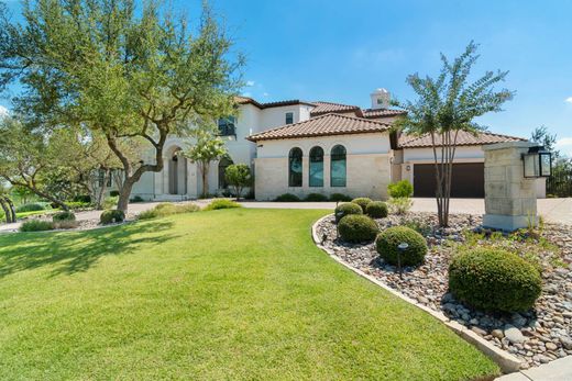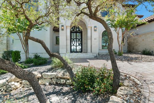 Ein außergewöhnliches Anwesen, das raffinierte Handwerkskunst mit modernem Design vereint und sich perfekt für ruhiges Wohnen und rauschende Feste eignet. Die Residenz besticht durch hohe Decken, moderne Armaturen, edle Verzierungen und raumhohe Glasfronten, die die Innenräume mit natürlichem Licht durchfluten. Dank Smart-Home-Integration über Control4-Automatisierung haben Sie die Technologie stets griffbereit. Jeder Raum wurde mit viel Liebe zum Detail und erlesenen Materialien gestaltet. Der großzügige Wohnbereich mit seiner schwebenden Decke geht fließend in eine luxuriöse Küche über, die mit professionellen Thermador-Geräten, maßgefertigten Massivholzschränken von Michael Edwards und zwei übergroßen Quarzinseln ausgestattet ist. Große LaCantina-Türen schaffen einen nahtlosen Übergang zwischen Innen- und Außenbereich. Der Außenbereich ist schlichtweg spektakulär. Panoramablicke von der Hügelkuppe rahmen einen vom Resort inspirierten Infinity-Pool und Spa von Keith Zars, eine voll ausgestattete Außenküche, Feuerstellen und einen Sportplatz ein. Ob Sie ein rauschendes Fest feiern oder ruhige Abende zu Hause genießen möchten – 23 Grand Terrace bietet einen unvergleichlichen Lebensstil in einer der exklusivsten Wohngegenden von San Antonio.