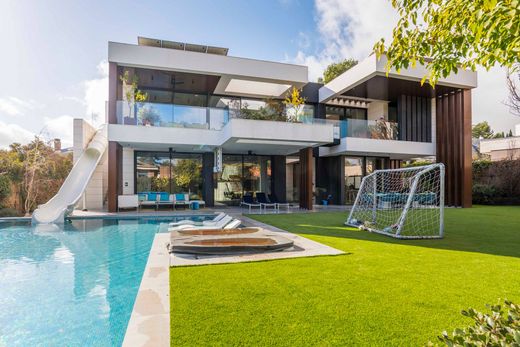 Park Conde Orgaz Zeitgenössische Architektur In einer der renommiertesten Wohngegenden Madrids gelegen, definiert dieses außergewöhnliche Anwesen aus dem Jahr 2021 das Konzept zeitgenössischen luxuriösen Wohnens neu, indem Architektur, Technologie und Wohlbefinden in absoluter Harmonie zusammenleben. Als ein Haus mit klaren Linien und monumentalen Proportionen konzipiert, zeichnet sich das Haus durch eine makellose räumliche Kontinuität zwischen Innen- und Außenbereich aus, dank seiner großformatigen verglasten Elemente mit versteckter Profile, die jeden Raum mit natürlichem Licht fluten und die visuellen Grenzen zum Garten verwischen. Die außergewöhnlichen Deckenhöhen, die in den Hauptbereichen bis zu 6 Meter erreichen, erzeugen ein ungewöhnliches Bühnenbild, das durch bodentiefe Türen und eine sorgfältig ausgewählte Auswahl an edlen Materialien, die zeitlose Raffinesse vermitteln, verstärkt wird. Der Außenbereich wurde als echte private Oase gestaltet, mit einem eleganten Landschaftsdesign, einem Hauptpool, einem Whirlpool und integrierten Spielbereichen, die verschiedene Umgebungen für Ruhe, Unterhaltung und soziales Leben bieten, alles mit absoluter Privatsphäre. Das Haus verfügt über ein umfassendes Smart-Home-System der neuesten Generation, das eine intuitive Steuerung von Klima, Beleuchtung, Sicherheit und Jalousien ermöglicht und ein komfortables und hochgradig personalisiertes Wohnerlebnis gewährleistet. In Bezug auf Nachhaltigkeit setzt sich das Anwesen an der Spitze des Marktes: maximale Energieeffizienz, Klimatisierung durch Aerothermie, Fußbodenheizung und -kühlung, hochleistungsfähige Fenster und eine leistungsstarke Photovoltaikanlage, die seinen verantwortungsbewussten und effizienten Charakter stärkt. Aufteilung und Räume Hauptetage Ein majestätischer doppelter Eingangsbereich prägt den repräsentativen Charakter des Hauses. Das formale Wohn- und Esszimmer, visuell mit dem Garten verbunden, wird durch einen Innenhof mit Gartenbereich ergänzt, der Ruhe und Licht bringt. Die minimalistische Küche mit Gaggenau-Geräten, integrierten Kochflächen und einem eleganten Essbereich vervollständigt die Etage zusammen mit Gästetoiletten, separaten Servicebereichen und vielseitigen Aufbewahrungslösungen. Privatbereich - Erste Etage Die Hauptsuite präsentiert sich als eigenes Privatapartment mit eigenem Wohnbereich, großem begehbarem Kleiderschrank und einem Design-Badezimmer mit doppelter Ausstattung. Die übrigen Familienschlafzimmer, alle en-suite, wurden für maximale Privatsphäre, Komfort und Funktionalität konzipiert. Untere Etage Als Raum für Freizeit und Wohlbefinden konzipiert, beherbergt sie einen geräumigen multifunktionalen Raum mit direktem Zugang zum Garten, ideal als privates Kino oder Veranstaltungssaal, Fitnessstudio, Gästezimmer en-suite, Technikräume und Nebenräume. Es besteht auch die Möglichkeit, einen exklusiven Wellness- oder Spa-Bereich zu erweitern und 4 geschlossene Parkplätze hinzuzufügen, um das Niveau des Anwesens weiter zu erhöhen. Eine einzigartige Residenz, gedacht für diejenigen, die architektonische Exzellenz, Privatsphäre und Effizienz schätzen, in einer der etabliertesten und begehrtesten Lagen der Hauptstadt. Sotheby's Spain International Realty freut sich, dieses außergewöhnliche Anwesen zu vermarkten.