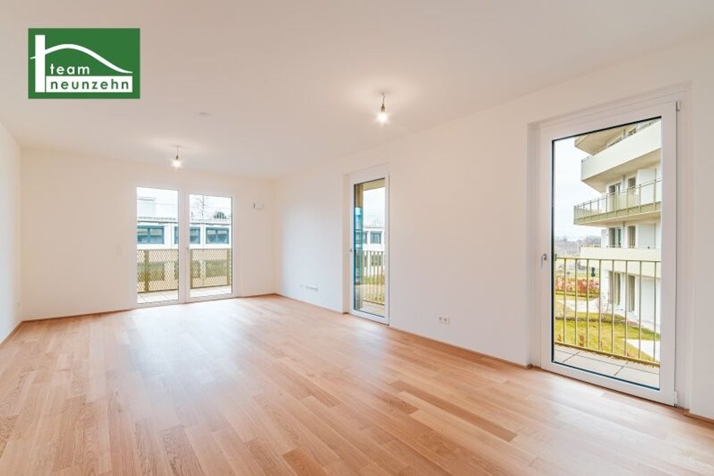 Die Lage ist ideal für alle, die naturnah wohnen und gleichzeitig von einer exzellenten Anbindung profitieren möchten. Das angrenzende Grüngebiet sowie der Marchfeldkanal laden zu Spaziergängen, Sport und Erholung ein.