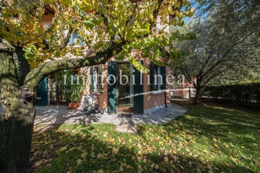 Die Villa ist von einem üppigen privaten Garten umgeben, ideal für Momente im Freien in völliger Privatsphäre: Die großen Fenster des doppelten Wohnzimmers sorgen für konstante natürliche Helligkeit und einen angenehmen Blick ins Grüne.