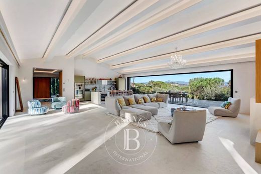In begehrter, ruhiger Lage befindet sich dieses prächtige Anwesen mit Meerblick auf 465 m². Es besteht aus einem komplett renovierten Haupthaus, einem Gästehaus und einem Hausmeisterhaus. Das gesamte Anwesen erstreckt sich über ein 4.860 m² großes, parkähnlich angelegtes Grundstück. Das Haupthaus verfügt über eine Eingangshalle, einen geräumigen und hellen offenen Wohn-/Essbereich mit Zugang zu drei großen Terrassen, eine voll ausgestattete offene Küche und drei Schlafzimmer mit jeweils eigenem Bad. Das Gästehaus bietet ein Wohnzimmer mit Einbauküche, ein Schlafzimmer und ein Duschbad. Zum Anwesen gehören außerdem eine Garage, ein Fitnessraum, ein weiteres Schlafzimmer, ein großes, ausbaufähiges Studio-Apartment und ein separates Hausmeisterhaus. All dies liegt inmitten eines wunderschön angelegten Gartens mit Bouleplatz, beheiztem Swimmingpool und ausreichend Parkplätzen. Das Anwesen befindet sich in einem Gebiet, in dem die Rodung von Buschwerk vorgeschrieben ist. Für weitere Informationen steht Ihnen das Team von BARNES International Saint-Tropez gerne zur Verfügung. Tel.: +33 4 94 43 32 47