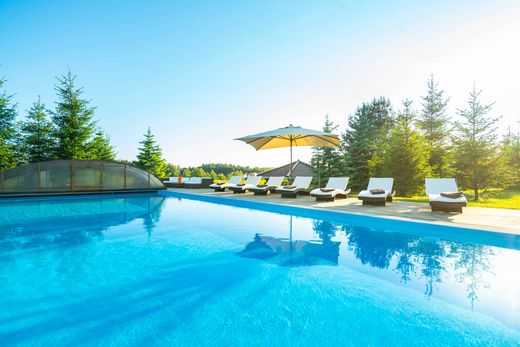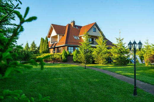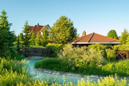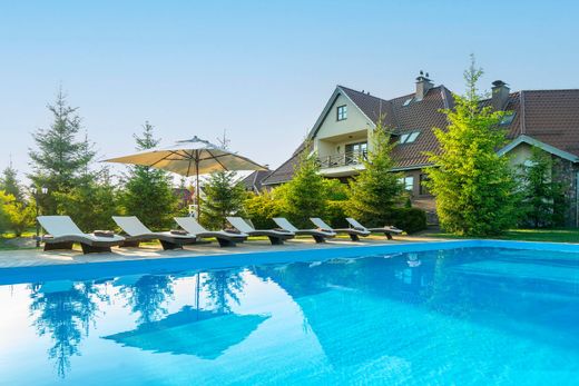Exklusives Anwesen im Masurischen Stil: 721,94 m² Wohnfläche mit Pool auf 1,13 ha großem Grundstück im Herzen der Masurischen Seenplatte. Die Masurische Seenplatte bezaubert seit jeher mit ihrer unberührten Natur, kristallklaren Seen und duftenden Wäldern. In dieser malerischen Umgebung, am Rande des Piszer Waldes, nur 10 Gehminuten vom Stadtzentrum von Mikołajki und den Ufern des Mikołajskie-Sees und des Tałty-Sees entfernt, liegt das Anwesen im Masurischen Stil – ein beeindruckendes Haus mit 721,94 m² Wohnfläche, Baujahr 2011, mit großem Grundstück und Swimmingpool. Objektbeschreibung: Das Anwesen befindet sich auf einem gepflegten, 1,13 ha (11.300 m²) großen Grundstück, umgeben von Grün und Bäumen. Das Gebäude im masurischen Stil zeichnet sich durch ein steiles Dach, zahlreiche Fenster und warme Farbtöne aus. Das Anwesen umfasst einen Außenpool mit Liegestühlen und Sonnenschirmen, eine breite Auffahrt und eine Garage für drei Fahrzeuge. Das Haus bietet: acht große Zimmer (je 25–30 m² mit eigenem Bad), ein geräumiges Wohnzimmer mit Essbereich und Küche, eine Eingangshalle, drei WCs, ein Gäste-WC, einen Heizraum, einen Wintergarten und ein ausgebautes Dachgeschoss (großes Zimmer mit Bad, zwei kleinere Zimmer, Abstellräume). Hangar und weitere Ausstattung: Ein großer Hangar bietet Platz für Boote und Freizeitgeräte und verfügt über einen Wachraum, ein Badezimmer und einen Raum im Erdgeschoss. Im Obergeschoss befindet sich eine separate Wohnung (Küche, Wohnzimmer, Schlafzimmer, Badezimmer). Hauptvorteile: • Erstklassige Lage in der Nähe von Seen und dem Zentrum von Mikołajki • 1,13 ha großes Grundstück mit Pool und kompletter Infrastruktur • 8 Zimmer im Hotelstil + Tagesbereich • Baujahr: 2011 • Garage für 3 Fahrzeuge + Hangar mit Wohnung • Ideal als Gästehaus oder privater Wohnsitz Eckdaten: • Wohnfläche: 721,94 m² (Baujahr 2011) • Grundstück: 1,13 ha • Lage: Region Mikołajki, Woiwodschaft Ermland-Masuren Exklusiv angeboten von Poland Sotheby's International Realty. Wir laden Sie zu einer exklusiven Besichtigung dieser außergewöhnlichen Immobilie ein – kontaktieren Sie uns noch heute und entdecken Sie ihren masurischen Charme persönlich!