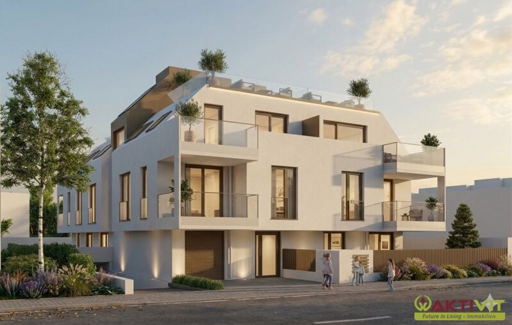 Die Wohnungen verfügen über durchdachte, kompakte Grundrisse mit überwiegend zweiseitiger Orientierung. Jede Einheit ist mit einem privaten Freibereich ausgestattet, von großzügigen Eigengärten im Erdgeschoss über Balkone im Obergeschoss bis hin zu privaten Dachterrassen im Dachgeschoss. Die Beheizung erfolgt über Luft-Wärmepumpen, ergänzt durch eine Photovoltaikanlage am Dach.