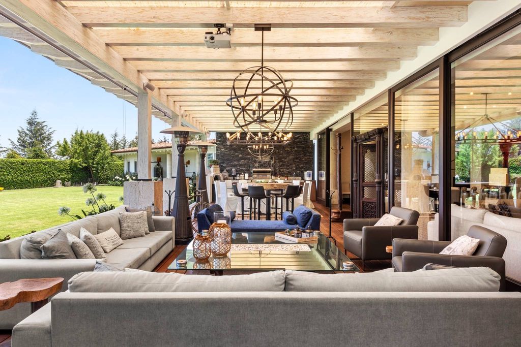 Με εξαιρετικό σχεδιασμό και εξαιρετικό αρχιτεκτονικό έργο του διάσημου αρχιτέκτονα Francisco Artigas, ανακαλύψαμε αυτό το εντυπωσιακό σπίτι με γεύση ιταλικής βίλας στην αποκλειστική ανάπτυξη Rancho San Francisco. Η κύρια μαρμάρινη είσοδος με μεγάλη προσωπικότητα μας οδηγεί μέσα από έναν μεγαλοπρεπή διάδρομο στον κοινωνικό χώρο και στο πίσω μέρος στον οικογενειακό χώρο. Το σαλόνι και η τραπεζαρία, που περιβάλλονται από εκπληκτικά έργα τέχνης, είναι ανοιχτό και κοντά στη βεράντα που διαθέτει φούρνο πίτσας, ψησταριά και μπαρ, καθώς και τον όμορφο κήπο. καταφέρνοντας να ενσωματώσει αυτούς τους χώρους για να μοιραστείτε μεγάλες στιγμές. Στον ίδιο όροφο βρίσκουμε την αίθουσα παιχνιδιών, τη σκεπαστή πισίνα με τζακούζι και το γυμναστήριο με 2 πλήρη μπάνια, με υπέροχη θέα στα εξωτερικά τοπία και τις απίστευτες φωτεινές εισόδους της. Επίσης σε αυτόν τον όροφο, έχουμε ένα γραφείο, την κουζίνα με εξοπλισμό zub-zero και 2 μεγάλα ντουλάπια. εκτός από την άτυπη τραπεζαρία. Τα 4 υπνοδωμάτια έχουν εξαιρετική εσωτερική διακόσμηση με φινιρίσματα κορυφαίας ποιότητας, δερμάτινα καμαρίνια, μαρμάρινα μπάνια με όμορφες αντιθέσεις και σουίτα επισκεπτών. Ένα επίπεδο πιο κάτω είναι ο κινηματογράφος 12 ατόμων με μπάνιο και μικρή κουζίνα και το εξαιρετικό cava και χαλαρωτικό σπα. που μας επιτρέπει να απολαμβάνουμε έναν υπέροχο τρόπο ζωής, με πρόσβαση σε στεγασμένο χώρο στάθμευσης για 12 αυτοκίνητα, επιπλέον χώρο για οδηγούς ή ασφάλεια και 3 αποθήκες.