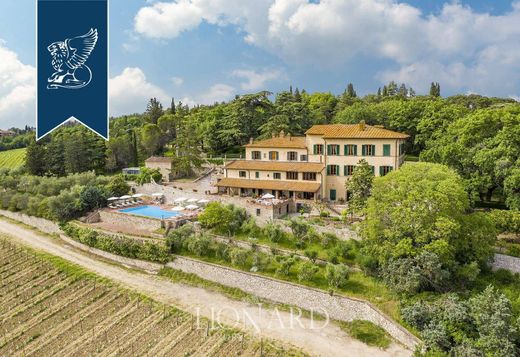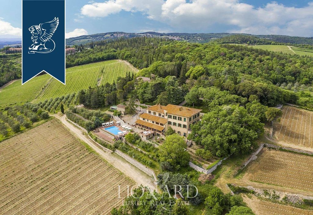 Στην Castellina in Chianti, στα σύνορα μεταξύ Φλωρεντίας και Σιένα, πωλείται αυτό το εκπληκτικό ακίνητο του 19ου αιώνα, χτισμένο πάνω στα ερείπια ενός μεσαιωνικού φρουρίου. Βρίσκεται στην κορυφή ενός λόφου με θέα στο μαγευτικό περιβάλλον, αυτό το κτήμα περιβάλλεται από 46 εκτάρια γης, συμπεριλαμβανομένων πάνω από 30 εκταρίων πυκνού δάσους και βοσκοτόπων, 6 εκταρίων αμπελώνων Chianti Classico DOCG και 800 ελαιόδεντρων σε τρία εκτάρια. Ένας εκπληκτικός κήπος 5.000 τετραγωνικών μέτρων περιβάλλει το σπίτι, με όμορφα διακοσμημένους χώρους διαβίωσης. Η θέα από την υπέροχη περιοχή της πισίνας περιβάλλει ένα τοπίο ασύγκριτης ομορφιάς. Από εδώ, έχετε πρόσβαση σε μερικά από τα 18 υπνοδωμάτια του κτήματος, με άμεση θέα στον κήπο και τους αμπελώνες. Κάθε δωμάτιο είναι κομψά επιπλωμένο με έπιπλα εποχής και διαθέτει ξύλινες οροφές και δοκάρια. Αυτοί οι χώροι συμπληρώνονται από πολυάριθμους φιλόξενους χώρους σχεδιασμένους για χαλάρωση, όπως η υπέροχη πανοραμική βεράντα δίπλα στην πισίνα. Αυτό το ακίνητο διαθέτει μεγάλη ιστορική γοητεία, ιδανικό για όσους ονειρεύονται ένα ιδιωτικό κτήμα στην καρδιά του Chianti Classico ή για όσους επιθυμούν να διευθύνουν μια καθιερωμένη επιχείρηση φιλοξενίας, συμπεριλαμβανομένου ενός χώρου για ιδιωτικές εκδηλώσεις. Αναφ.: 7229