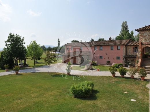 Ιστορική αγροικία, που χρονολογείται από τον 13ο αιώνα, με πάρκο και πισίνα προς πώληση στην Τοσκάνη και στα σύνορα με την Ούμπρια, που βρίσκεται βορειοανατολικά του Arezzo, με πανοραμική θέα στις μεσαιωνικές πόλεις Anghiari και Sansepolcro (γενέτειρα του Piero του Francesca). Το συγκρότημα, που μετατράπηκε σε μια εκλεπτυσμένη εξοχική κατοικία, πρόσφατα (2002) ανακάλυψε εκ νέου την αρχαία του γοητεία μέσα από μια ριζική παρέμβαση, που εφαρμόστηκε με αυστηρή τήρηση των αρχικών χαρακτηριστικών, αντισεισμικών κανονισμών και σύγχρονων κριτηρίων θερμο-ακουστικής μόνωσης και μέσω της εισαγωγής νέων αρχιτεκτονικά και διακοσμητικά στοιχεία. Το συγκρότημα εκτείνεται σε δύο ορόφους συνολικής επιφάνειας άνω των 1000 m2, χωρισμένο σε 5 ανεξάρτητα διαμερίσματα με ανεξάρτητη είσοδο στον κήπο συν την κύρια μονάδα άνω των 250 m2 με 2 υπνοδωμάτια (ένα εκ των οποίων είναι μεγαλύτερο με διπλανή ντουλάπα δωμάτιο), συν δύο δωμάτια, διαδρόμους και 2 γκαράζ στο ισόγειο. Κλειστό πάρκινγκ στον κήπο για κάθε διαμέρισμα. Συνολικά 9 υπνοδωμάτια, 10 μπάνια, επιπλέον των σαλονιών κατανεμημένα στις διάφορες μονάδες. Εξαιρετική επιχείρηση τόσο για ενοικίαση διαμερισμάτων για τουριστική χρήση όσο και για δεξιώσεις τελετών. Το κτήριο βρίσκεται μόλις 4 χλμ. από το κέντρο του Anghiari και του Sansepolcro, όχι μακριά από το Arezzo, τη Siena και την Perugia για να φτάσετε εύκολα στην Ασίζη, το Montepulciano, το Urbino, τη Φλωρεντία, τη Ρώμη, τη λίμνη Trasimeno. Τα πλησιέστερα αεροδρόμια είναι η Περούτζια (50 χλμ., 40 λεπτά), η Φλωρεντία (90 χλμ., 1 ώρα και 15 λεπτά), η Μπολόνια (185 χλμ., περίπου 2 ώρες), η Πίζα και η Ρώμη (180 χλμ., 2 ώρες). Το Arezzo, γενέτειρα του Francesco Petrarca και του Giorgio Vasari, υπήρξε μια από τις σημαντικότερες πόλεις τέχνης στην Τοσκάνη από την προ-ρωμαϊκή εποχή, αφού στην πραγματικότητα ήταν μια ετρουσκική πόλη. Η επικράτεια του δήμου της είναι πολύ μεγάλη και περιλαμβάνει μερικές από τις πιο όμορφες ιστορικές πόλεις σε όλη την κεντρική Ιταλία, όπως το Città di Castello, το Castiglion Fiorentino, το Sansepolcro κ.λπ. Το ιστορικό κέντρο είναι απόλυτης σημασίας όπως η Σιένα και η Φλωρεντία. Η τυπική κουζίνα είναι γνωστή, υπάρχουν πολλά παραδοσιακά πιάτα, όπως σκουληκόφαγη σούπα και μαύρη τρούφα, συνοδευόμενα από κρασιά από τους λόφους του Arezzo.