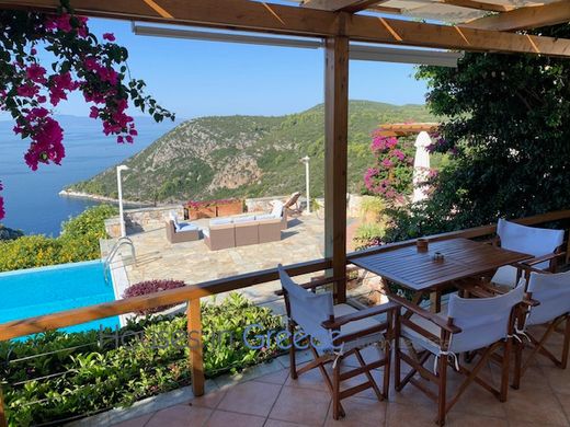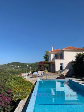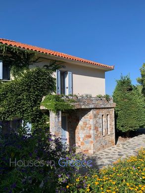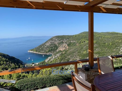 Sumérjase en un lugar de absoluta naturaleza y tranquilidad: esta lujosa propiedad que consta de una villa principal y 2 casas más pequeñas hechas de piedra maciza de la isla de Skopelos se extiende sobre una parcela de 9500m2 y está cuidadosamente ajardinada en un hermoso jardín perfectamente cuidado. completa con palmeras, algas, olivos, naranjos, limoneros, ciruelos, flores de ensueño. Todas las casas tienen su propia terraza grande y se reúnen en una enorme piscina infinita de 60m2 y barbacoa con una vista impresionante de una playa blanca donde se pueden ver las puestas de sol más espectaculares. La gran villa tiene una superficie total de 280m2 (planta baja y primer piso 140m2, sótano 140m2 incluyendo vistas al mar) y tiene en la planta baja una sala de estar espaciosa y muy elegante con una cocina abierta y muchos ventanales grandes donde se ve el mar. y la hermosa naturaleza te sorprenderá por todas partes y una maravillosa chimenea. En el primer piso 2 dormitorios con balcón y vista al mar y 2 baños. En el sótano hay una sala de estar abierta con una cocina abierta y más dormitorios y baños, una salida privada al jardín y una terraza privada. Las otras dos casas tienen 70m2 cada una, un hermoso espacio abierto con techo de vigas, cocina abierta y chimenea y dormitorio con baño en la planta baja. Una escalera conduce al dormitorio y al baño del dúplex de planta abierta, todo en blanco. Las amplias terrazas de ambas viviendas cuentan además con unas inolvidables vistas al mar. Esta propiedad también es ideal como inversión para fines turísticos. Una verdadera belleza, por dentro y por fuera.