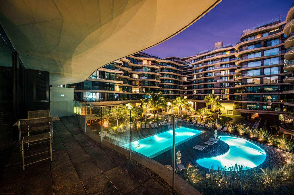 Esta unidad es uno de los departamentos más grandes del edificio en 1 dormitorio. Tienen 83 m2 propios (contra aproximadamente 60 m2 de los demás). Cuenta con baño social (inodoro), lo que permite que el dormitorio sea en suite y con vestidor. Está ubicado en esquina, por lo que tiene ventanas no solo al frente sino también a los costados. En consecuencia es muy luminoso. Sol toda la mañana. Está protegido de los vientos por lo que no recibe el frío viento Sur. Se genera un microclima en el área interna. En consecuencia, la terraza, que tiene unos 18mts, tiene un uso real. Es ideal para desayunar por el sol de la mañana pero también de la tarde. La vista al espejo de agua de la piscina es un plus junto con todas las vistas a los jardines y palmeras que cubren el centro de Forum. Atributos adicionales incorporados; A/C, Rollers motorizados, Todesquini Feature Wall, iluminación LED importada en toda la unidad, barra desayunadora nueva (más amplia y con upgrade de categoría de madera), equipamiento de muebles de 1° categoría. Cochera super amplia. Amenities de lujo: Salón de fiestas, salones gourmet, piscina, gimnasio de última generación, vestuarios, sauna, salas de jóvenes, salas de niños, masajes, business center. Portería y seguridad las 24 horas todo el año. Excelente ubicación. Muebles BoConcept e italianos. Además la cocina y heladera son Ariston-Italia. Incluye 1 cochera. Se ofrece en alquiler en USD 2.600 con contrato a un año. Y en USD 2.500 con contrato a dos años. consultar