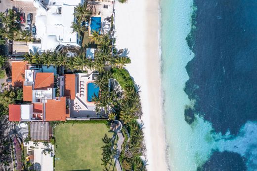 En el exterior dos amplias terrazas techadas que albergan excelentes espacios para la convivencia, una sala y un área de bar; así como un comedor para 12 personas con vistas directas hacia el mar Caribe; distintas áreas de camastros y una impresionante piscina frente al mar, finalmente un área de extraordinaria vegetación, con vistas directas hacia el mar Caribe. Cuenta también con 2 recámaras más, en un medio nivel hacia abajo, son recámaras que se conectan entre si y tienen baño completo y vestidor cada una, una barra, con vista y acceso directo al mar Caribe.