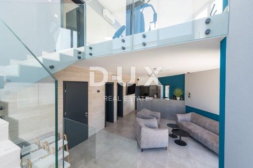 ZADAR, VIR - Complejo de 8 modernas y lujosas villas con piscina Es un complejo privado propiedad de una persona jurídica. Un complejo que consta de 8 villas lujosas y modernamente decoradas con piscina, un edificio con recepción, un gimnasio y sauna independientes más grandes, así como una cancha de baloncesto más grande compartida. Todo el complejo de villas se encuentra en las inmediaciones del centro, pero está vallado y ofrece privacidad. En el edificio principal, justo en la entrada del resort, se encuentra la recepción, salas auxiliares para mantenimiento y una zona de spa; amplio baño, sauna, bañera de hidromasaje, sala con camilla de masajes de agua y un amplio gimnasio bien equipado. El propio gimnasio, completamente acristalado, ofrece una maravillosa vista de los alrededores. Además del edificio principal, en una gran parcela de unos 4.000 m2 se encuentran también 8 villas que, junto con su jardín, están cuidadosamente divididas por separado. La superficie de cada villa es de 107 m2 habitables y se distribuyen en una amplia zona de estar que incluye cocina, salón con acceso a la terraza y baño, y dos dormitorios con baños independientes. Cada uno también contiene dos espacios de estacionamiento y su propia piscina, comedor, regadera exterior y área de parrilla. Delante de la villa hay una terraza y un jardín bien cuidado. Todo el complejo ofrece mantenimiento durante todo el año tanto de las unidades de alojamiento como de atención a los huéspedes. La primera playa está a sólo 1 km de este maravilloso lugar. Estimados clientes, la comisión de agencia se cobra de acuerdo con los Términos y Condiciones Generales: ZADAR, VIR - Un complejo de villas modernas y gimnasio.