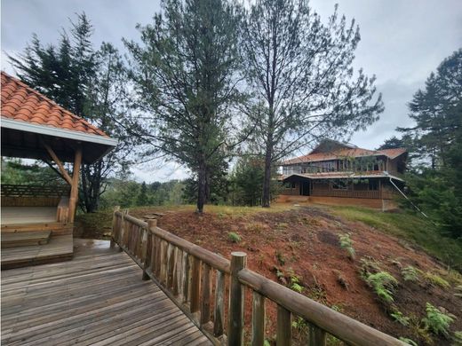 Hermosa casa campestre, aproveche la oportunidad que le brinda la madre naturaleza en RESERVA NATURAL en área de 5500 m2 y 750 m2 construidos, ubicada en la Vereda Maso, cerca de Eco-Hotel Nigüito, Universidad Nacional, cuenta con 4 vías de acceso por Palmas, Rionegro, Medellín-Buenos Aires o Guarne, tiene 2 pisos elaborada con madera inmunizada, con doble entrada, 4 amplios balcones que le permiten divisar el esplendor de una vista única en medio de una reserva natural, con escalera en teca hacia ampilos pasillos, tiene 5 habitaciones cada una con baño, más 2 baños sociales, Salón comedor, sala de estar, cocina integral en isla, tiene con luz solar y convencional, tanque de agua para 15000 Lts, calentador de agua, en el exterior tiene deck con jacuzzi al aire libre al lado de amplia zona social cubierta. Tiene cabaña de mayordomo de 2 pisos con 200 m2 construidos, cocina integral, 4 habitaciones con baño privado. Permuta máximo de $800 mm, Opcion venta amoblada.