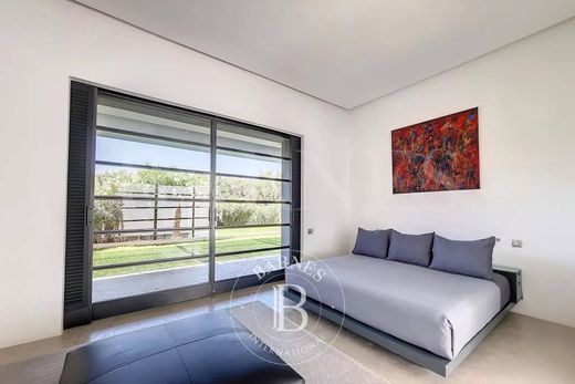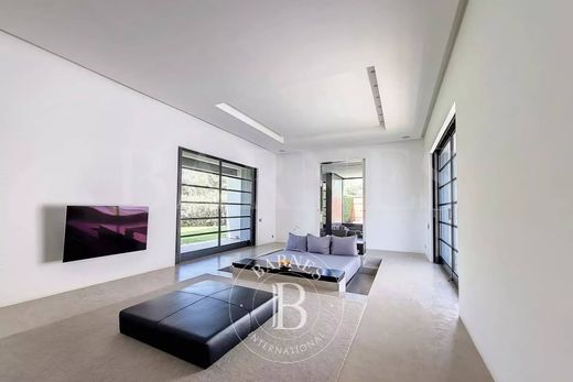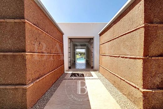Ubicada a unos veinte kilómetros de Marrakech, en la carretera de Ourika, la propiedad ofrece un entorno exuberante y vistas impresionantes de los picos nevados del Atlas. La parcela arbolada y ajardinada de 4 hectáreas alberga un lago de 5000 m² y una moderna piscina de 50 m de largo. La casa principal se integra a la perfección en este entorno verde. La aparente simplicidad de los volúmenes subraya discretamente la extrema sofisticación de todas las características técnicas (calefacción por suelo radiante, aire acondicionado reversible, piscina climatizada, etc.). El edificio principal ofrece dos dormitorios, uno de ellos con piscina privada, baños con toques marroquíes gracias al uso de tadelakt renovado para mantener la estética moderna del resto de la casa, un spa, una sala de cine y diversos espacios para reunirse y compartir momentos de convivencia. Anexos al edificio principal, se encuentran diferentes pabellones con 4, 2 y 3 suites amplias y elegantes, respectivamente. Las limitaciones climáticas no obstaculizaron la creatividad arquitectónica y se convirtieron en el motor de este proyecto. En un proceso ecológico, la proximidad de las fachadas sur (cálida) y norte (fría), inducida por la forma alargada del edificio principal, le proporciona un acondicionamiento natural por convección. Esto, combinado con un riguroso aislamiento térmico, reduce significativamente los gastos energéticos innecesarios, a la vez que permite grandes ventanales que dan a terrazas profundas. Presentado por BARNES MARRAKECH, agencia inmobiliaria en Marrakech - inmobiliaria de lujo en Marrakech - villa en venta en Marrakech.