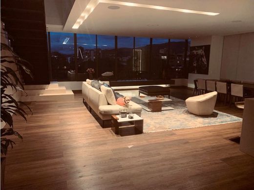 Espectacular penthouse para ARRIENDO de 295 M2 construidos + 55 M2 en segundo nivel y 130 M2 de terraza cubierta con magnífica vista. Acabados de lujo de Productos Arquitectónicos. Sistema de sonido ambiental, Ascensor con acceso directo al apartamento, Sala comedor con chimenea y vista, Sala de TV, Estar de alcobas, 3 alcobas con balcón, vestier y baño, Cocina abierta, Bar y BBQ dotado, Cuarto y baño de servicio, 3 parqueaderos independientes . Edificio club house con piscina, gimnasio, 2 jacuzzi, salas de juntas, salón social, salón de yoga, sala de juegos infantiles, terraza BBQ. Canon con Administración y caldera. Ref JG 0224