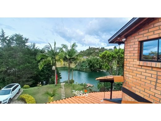 Finca ubicada en consominio a 50 metros de la vía a Guatapé.Cuenta con 2.646 m2 de terreno, 350 m2 construidos, casa de 3 niveles con 3 habitaciones, 3 baños completos, 3 jacuzzi, turco, deck, terraza, acceso directo al embalse y topografía pendiente.