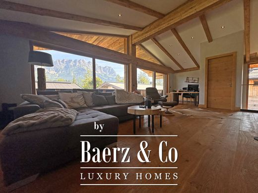 Este moderno chalet, construido en estilo alpino, está situado en las inmediaciones de las pistas de esquí y ofrece una maravillosa vista al Wilder Kaiser. La generosa superficie habitable/útil de aprox. 357 m² se distribuye en tres plantas. Debido a la ligera pendiente, la zona de entrada con un amplio guardarropa se encuentra en el sótano de la casa, al igual que el espacioso garaje con suficiente espacio de almacenamiento para esquís y material deportivo. Esta planta también ofrece un trastero/sala multiusos extremadamente espaciosa, así como una sala de fitness/bienestar con sauna, ducha y WC, una sala técnica y un aseo de invitados. En la planta del jardín se encuentra la zona principal con vestidor y un amplio baño con lavabo doble, bañera, ducha y acceso a la terraza. Dos dormitorios más, cada uno con baño en suite, también se encuentran en esta planta. Todos los dormitorios tienen acceso a la terraza. El ático es uno de los aspectos más destacados de esta propiedad. El ático tiene una sala de estar / comedor / cocina espaciosa y luminosa con vigas de techo a la vista, una chimenea abierta y acceso a las dos terrazas con balcones con fantásticas vistas a la montaña. Este chalet ofrece: - suelos de roble de alta calidad - elegantes muebles de baño - vigas de techo a la vista - fachada en madera vieja y piedra - chimenea abierta - cocina moderna equipada con electrodomésticos de primera calidad - sala de bienestar / fitness con sauna - ascensor - persianas exteriores eléctricas - sistema Sonos - amplias áreas de balcón y terraza - garaje doble y plazas de aparcamiento al aire libre, y mucho más Ubicado en un callejón sin salida, en las inmediaciones de las pistas de esquí, cerca del campo de golf ya poca distancia de tiendas, restaurantes y cafeterías, este chalet ofrece vistas al Wilder Kaiser. Going es un pueblo tranquilo con raíces originales. Going es parte del mundo de esquí Wilder Kaiser-Brixental. 90 teleféricos y remontes de última generación brindan acceso a 284 kilómetros de pistas perfectamente preparadas. En verano, Going atrae a senderistas, ciclistas, escaladores o simplemente a quienes buscan tranquilidad, sobre todo por su hermosa naturaleza. El lago de Going, alimentado por los manantiales del Wilder Kaiser, es uno de los lagos naturales más bonitos del Tirol. Desde Going se puede llegar a Kitzbühel en unos 10 minutos en coche. Las ciudades de Innsbruck, Salzburgo y Múnich se encuentran a aproximadamente 1 hora en coche.