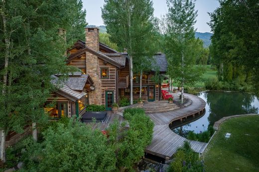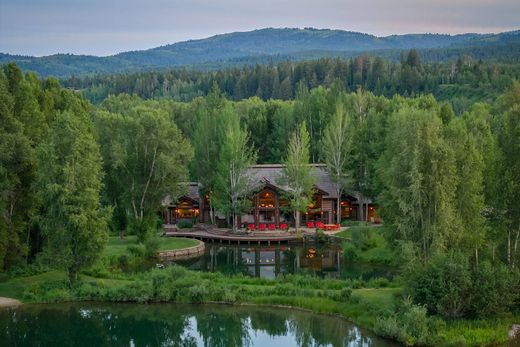 Con más de 71 acres, 14 habitaciones, 18 baños, más de 16 000 pies cuadrados de edificios, más de 10 acres de estanques de truchas y agua viva, y con vistas directas a los Tetons, bienvenido a Five Ponds Ranch. La enorme extensión del rancho cuenta con una casa principal de 8300 pies cuadrados, así como una oficina moderna completamente restaurada y un granero de juegos, una pista de equitación, corrales para caballos, una cabaña/oficina de administración y tres cabañas para invitados. Ser propietario de este rancho le ofrece al comprador una superficie total compuesta de hasta 30 000 pies cuadrados de edificios. Five Ponds Ranch comprende una auténtica finca heredada con todos los elementos de una propiedad generacional con abundante agua, pesca, caballos y senderos, además de mucho espacio para canchas de tenis y pickleball, piscinas, un granero para autos y un espacio dedicado para eventos. Ese sueño recibe mucha atención en estos lugares, pero este rancho es lo que realmente importa. Todo esto se encuentra en Crescent H, el vecindario más atractivo de Jackson, con incontables millas de pesca privada certificada durante todo el año, senderismo, equitación, esquí nórdico preparado y acceso directo a millones de acres de naturaleza salvaje. El rancho se encuentra junto a Fall Creek Road, una de las carreteras pequeñas más pintorescas de todo Wyoming. Esta carretera casi no tiene tráfico turístico y es ideal para andar en bicicleta y acceder a redes de senderos ignorados y pozos para nadar solo para locales. A solo unos minutos del rancho, estará en Teton Pass con todas sus caminatas y esquí de travesía, así como a un corto viaje en automóvil o en bicicleta de todo el legendario estilo de vida de West Bank, Wilson y Town of Jackson. Para rematar, tiene un viaje de 15 minutos de puerta a puerta desde el rancho hasta el propio Jackson Hole Mountain Resort. No es necesario enredarse con los atascos del puente en dirección oeste en el camino a un día de nieve en polvo. En general, simplemente no hay nada como este rancho disponible en el área de Jackson.