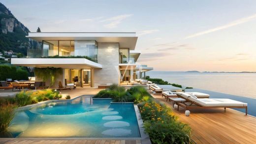 En las colinas de Toscolano Maderno, en un parque inmobiliario de más de 10.000 m2, la imponente villa, actualmente en fase rústica, goza de una de las vistas más impresionantes del lago.