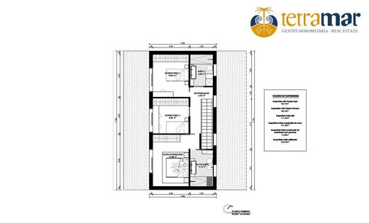 Oportunidad en una de las mejores zonas de Cervelló, ubicado en la urbanización Costa de la Perdiu. Proyecto de vivienda con una superficie edificada de 220m2 en una parcela de 1051m2. La casa tendrá dos plantas, en la planta baja se encontrará el salón comedor más cocina americana con amplios espacios abiertos y luminosos con vistas al jardín, más una habitación que puede ser usada como despacho y un baño completo. Luego, en la primera planta contará con 3 habitaciones: una doble en suite con baño completo propio. Otra habitación doble y una individual. Segundo cuarto de baño completo que le da servicio a ambas habitaciones. Calidades: suelos de parquet AC4, carpintería exterior de aluminio blanco, calefacción por splits. Toda la construcción será de obra nueva con buenas calidades y excelente ubicación. OPCIONAL domótica y piscina. No pierdas esta oportunidad de hacer la casa de tus sueños! REF 1607.