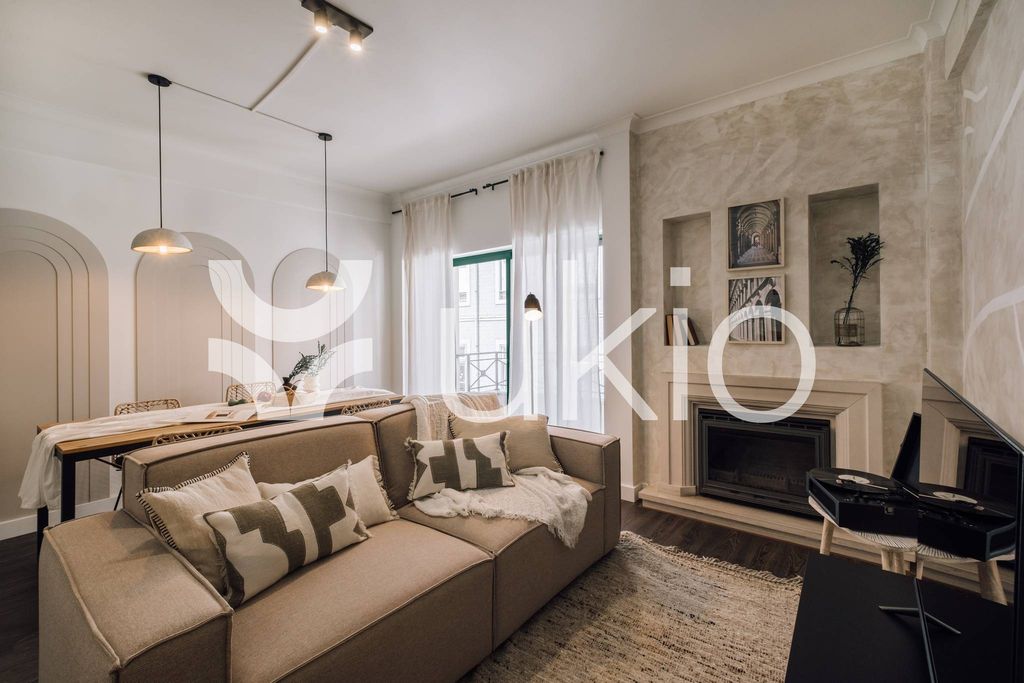El corazón del apartamento es su amplio salón, cuidadosamente amueblado para proporcionar comodidad y funcionalidad. Una acogedora zona de estar le invita a relajarse y disfrutar de momentos de ocio, mientras que el completo sistema de entretenimiento garantiza infinitas opciones de entretenimiento. Además, una estación de trabajo dedicada en la sala de estar ofrece un lugar conveniente para ponerse al día con el trabajo o simplemente planificar sus aventuras en Lisboa. La cocina, totalmente amueblada, es una delicia para los amantes de la cocina, ya que cuenta con modernos electrodomésticos y todo el menaje necesario. La mesa de comedor adyacente invita a saborear comidas caseras o a deleitarse con las delicias de la cocina local.
