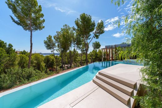 La selección de materiales responde a una intención clara de conexión con la tradición constructiva mallorquina. Estucos de cal, microcementos, piedra arenisca (marés), cantos rodados, y maderas naturales conforman una paleta cálida y atemporal. El jardín, con plantas autóctonas, grava y agua, complementa el vínculo con el entorno. Todo ello busca crear una experiencia sensorial completa, donde luz, textura, sonido y temperatura contribuyen a una forma de habitar conectada con la naturaleza y el paisaje local.