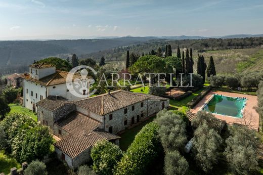 Se accede a la propiedad a través de un largo, imponente e impresionante camino privado bordeado de cipreses. La finca está inmersa en sus propios terrenos privados con vistas panorámicas sobre las colinas del Chianti Senese, embellecidos con numerosos cerezos y robles centenarios, así como una gran piscina y una pista de tenis situada en un parque formal. La superficie total es de aproximadamente 63 hectáreas, divididas en aproximadamente 4,5 hectáreas de tierra cultivable, aproximadamente 10,5 hectáreas de viñedo, aproximadamente 8,7 hectáreas de olivar, aproximadamente 26 hectáreas de bosque y aproximadamente 13,5 hectáreas de plantación.