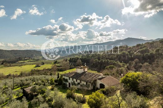 La villa, ahora perfectamente restaurada, fue en su día una casa de labranza del siglo XIII que formaba parte de la finca vecina y ahora disfruta de un entorno privado al final de un camino rural. La villa está llena de auténtico encanto y la propiedad ha sido alquilada con éxito como un refugio toscano durante varios años. La propiedad tiene aproximadamente 400 metros cuadrados de espacio habitable con 6 dormitorios y 5 baños, incluyendo una suite independiente con un dormitorio para el personal. También está perfectamente adaptada para reuniones, con salas de recepción, salas de juegos y varias pérgolas y terrazas para comer, con vistas a la campiña toscana circundante. La entrada principal conduce a la planta baja, que alberga un salón con mesa de billar, una gran cocina, un cuarto de baño para invitados, un comedor con chimenea y una sala de estar, esta última con acceso a una terraza con pérgola. El entresuelo alberga una sala de estar con un gran ventanal con vistas al jardín. La primera planta consta de dos dormitorios dobles con cuarto de baño en suite, dos dormitorios dobles que comparten un cuarto de baño con bañera, un dormitorio doble con escalera que conduce a una pequeña torre con cuarto de baño con bañera. Por último, una suite independiente que consta de un dormitorio doble accesible desde el jardín, un cuarto de baño con bañera y una cocina americana.