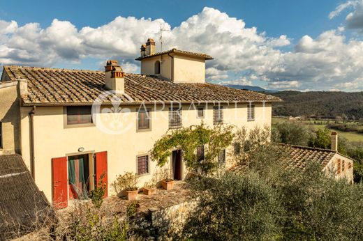Encantadora villa histórica toscana con piscina panorámica y pequeño lago en una posición dominante sobre las colinas de Florencia, en la región vinícola de Chianti.