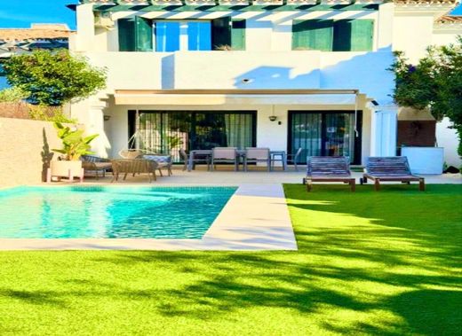 ~Este elegante chalet de tres dormitorios, tres baños y una piscina privada, está situado en una de las zonas más codiciadas de San Pedro Alcántara, dentro de la prestigiosa urbanización Marqués del Duero. Su ubicación en el corazón de la Costa del Sol, a solo unos minutos en coche de la exclusiva zona de Puerto Banús, te brinda el equilibrio perfecto entre tranquilidad y acceso a las mejores comodidades de Marbella.~~El chalet se encuentra en una parcela de 361 m2, con 196 m2 construidos de espacio habitable, distribuidos de forma funcional en dos niveles. La propiedad está diseñada para ofrecer la máxima comodidad y elegancia, con amplias estancias luminosas que aprovechan al máximo la orientación sureste, garantizando abundante luz natural durante todo el día.~~Características destacadas:~~Piscina privada rodeada de un exuberante jardín, creando un ambiente íntimo y relajante, perfecto para disfrutar del sol de la Costa del Sol.~Interiores modernos y de alta calidad, con un amplio salón, comedor independiente y una cocina totalmente equipada que se integra perfectamente en el diseño general de la casa.~~Acabados de lujo y materiales de primera calidad que aseguran durabilidad y confort en todos los espacios.~~Garaje privado y jardín privado que proporcionan un acceso cómodo y seguro, además de un espacio exterior perfecto para disfrutar en familia o con amigos.~Este chalet no solo es una excelente opción para quienes buscan un hogar permanente, sino también para aquellos que desean un refugio exclusivo en la Costa del Sol, cerca de todos los servicios, restaurantes de alta gama, tiendas de lujo y las famosas playas de Marbella.~~La propiedad está a pocos minutos de Puerto Banús, uno de los destinos más exclusivos de la región, y muy cerca de San Pedro Alcántara, con su vibrante ambiente, y ofrece fácil acceso a las principales vías de comunicación.~~Detalles adicionales:~~EPC (Certificado de Eficiencia Energética): en proceso.~Cuota de Comunidad: 100 €/mes, que cubre los gastos de mantenimiento y servicios comunes de la urbanización.~Este chalet es ideal para quienes buscan lujo, confort y privacidad en una de las mejores ubicaciones de Marbella.