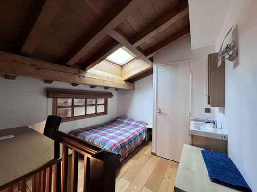 Les Houches, apartamento de 75m2 en la ley Carrez ubicado en una pequeña copropiedad de 8 lotes con bajas cargas. Original en su arquitectura, los espacios se distribuyen en 4 niveles. En la taberna encontramos un amplio dormitorio con ventana, un baño con bañera, un aseo independiente y una zona para dormir, En la planta baja, entrada con armarios, un dormitorio principal en suite con su baño y aseo. En el primer piso, la sala de estar y su cocina equipada se abren al salón con una gran terraza balcón con una espléndida vista de toda la cordillera del Mont-Blanc, sin vecinos. Por último, en el entrepiso, un dormitorio completa este apartamento con su inodoro y lavabo. Parking privado exterior en el anexo.