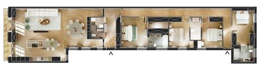 Con una orientación sur, el piso se beneficia de una luminosidad excepcional durante todo el día. Al ingresar, serás recibido por un amplio hall que te conducirá a una generosa zona de estar con salida a dos balcones corridos, ideal para disfrutar de momentos en familia o con amigos. La propiedad cuenta con cuatro habitaciones, de las cuales tres son en suite, ofreciendo privacidad y comodidad. Además, dispone de un aseo de cortesía, perfecto para tus visitas.