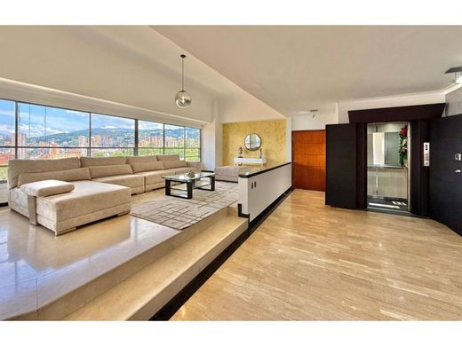 Amoblado ESPECTACULAR PH Poblado con Piscina Está propiedad es de las más completas del mercado PRIMER NIVEL Sala social para 12 personSala de TV con centro de TV y chimenea Comedor social Comedor de terraza Ascensor directo al apartamento 4 parqueaderos paralelos Sala de cine Oficina 4 habitaciones cada una con baño y vestier ( 2 con escritorio ) Cocina integral Balcón Zona ropa con lavadora y secadora 1 habitación servicio con baño Baño social Total son 5 habitaciones más servicio 6 baños más el social SEGUNDO NIVEL Habitación principal con sala de TV, terraza, comedor, baño doble, vestier doble, jacuzzi, cama king Piscina Sala de terraza Fuente Gimnasio Bar Comedor de terraza Sauna Turco UNIDAD RESIDENCIAL CUENTA CON: Piscina climatizada Zona mascotasParqueadero visitantes Portería 24 horas Parque infantil