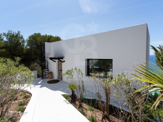 Villa Caleta. Sumerjase en un refugio de paz y lujo con esta suntuosa villa de estilo ibicenco, ubicada en el corazon del codiciado area residencial de La Granadella en Javea. Esta propiedad orientada al sur ofrece vistas impresionantes al mar Mediterraneo, a pocos pasos de la playa Cala Granadella, conocida por su bandera azul y votada repetidamente como la playa mas bella de Espana.