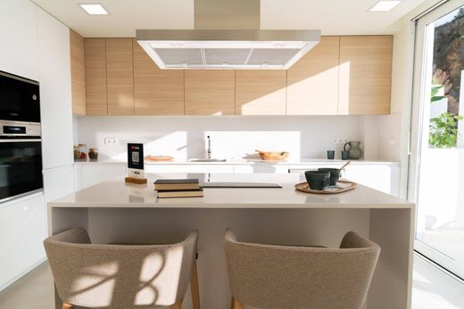 Villa de Lujo en Altea – Exclusividad Mediterránea con Vistas Incomparables~~Presentamos Blanc Altea , una sofisticada villa situada en una de las urbanizaciones más exclusivas de la Costa Blanca. Esta propiedad de alto standing destaca por su arquitectura moderna, la amplitud de sus estancias y una cuidada distribución que maximiza la luminosidad natural y las vistas panorámicas al mar Mediterráneo.~~Con una superficie generosa y un diseño funcional, la villa dispone de cuatro dormitorios en suite, cuatro baños completos, además de un aseo de cortesía, ofreciendo así el máximo confort y privacidad a todos sus ocupantes. La zona de día se distribuye en un amplio salón-comedor de concepto abierto, que conecta de forma fluida con una cocina totalmente equipada, con mobiliario de alta gama y electrodomésticos integrados.~~El exterior de la propiedad ha sido diseñado como una prolongación del interior, con una espectacular terraza con zona chill-out, piscina privada de borde infinito y un área de barbacoa perfecta para disfrutar del estilo de vida mediterráneo al aire libre. La villa también cuenta con un garaje cerrado y ascensor interior, garantizando comodidad en cada nivel de la vivienda.~~Decorada con un estilo fresco y mediterráneo, esta villa se entrega completamente amueblada, con armarios empotrados vestidos y todos los detalles necesarios para entrar a vivir desde el primer momento.~~Un Entorno Único en la Costa Blanca~~Vivir en Altea es disfrutar de la armonía entre mar y montaña, en un entorno que conserva la esencia del Mediterráneo más auténtico. Su casco antiguo de calles empedradas, las playas de cantos rodados y la emblemática cúpula azul de su iglesia crean un paisaje inconfundible que ha cautivado a artistas, escritores y amantes del buen vivir.~~Con una comunidad acogedora y una oferta cultural, gastronómica y natural inigualable, Altea es el lugar ideal para quienes buscan calidad de vida, privacidad y belleza en cada rincón.