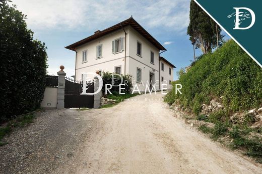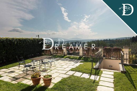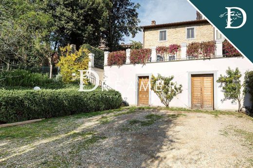 Parte de una villa con jardín privado en venta en Bagno a Ripoli, a solo 10 minutos del centro histórico de Florencia. La propiedad de aproximadamente 270 m², con 3 dormitorios y 2 baños, forma parte de una villa histórica dividida en dos unidades, con acceso peatonal y automático. La propiedad se distribuye en dos niveles, sobre un terreno de 3200 m² con olivos. La planta baja consta de un amplio salón, cocina-comedor, un luminoso salón con techos abovedados de ladrillo, un baño y un cómodo trastero/taberna. El salón da acceso a la zona exterior, que cuenta con una maravillosa terraza, parcialmente pavimentada, con vistas panorámicas a las colinas. Una escalera de piedra serena conduce a la zona de noche en la primera planta, que consta de 3 dormitorios y un baño. Un sótano completa la propiedad. REF: 6142