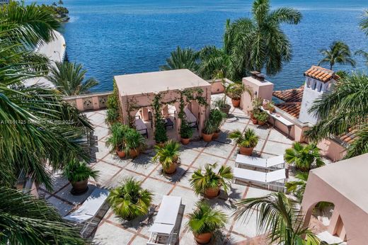 Un castillo de cuento de hadas en Coconut Grove, diseñado por Ralph Portuondo, donde la grandeza gótica se fusiona con la sofisticación moderna. El impresionante Gran Salón presume de techos abovedados de 9 metros, chimeneas de piedra y vidrieras antiguas, complementadas con lámparas de araña francesas de bronce fundido y suelos de piedra de Jerusalén. Entre sus características más destacadas se incluyen una cocina de chef de La Cornue, ascensor, piscina infinita con borde de piedra angular, muelle de cemento, solárium en la azotea y terrazas con vistas al agua. El paisajismo de Fernando Wong, las lámparas de araña de Murano de BF Signoretti y las cercas metálicas a medida de Belt Designs aportan una elegancia única. Además, una vivienda independiente con cocina y un sótano sin terminar de 280 metros cuadrados completan esta propiedad única.