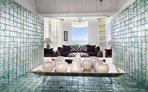 Ubicada en más de 1.6 hectáreas con casi 91 metros de prístina playa, Far Horizon es una obra maestra de diseño y tranquilidad en la prestigiosa comunidad de Windermere Island. Finalizada en 2008 y diseñada por el reconocido arquitecto Harold Levitt, esta residencia representa la cúspide de su célebre carrera. Conocida por crear hogares para la élite de Hollywood, la distintiva combinación de Levitt de formas modernas y belleza natural brilla en cada rincón. Amplios muros de cristal, altos techos abovedados y una fluida transición entre espacios interiores y exteriores invitan a la playa y al mar a la vida cotidiana. Patios y terrazas abiertas enmarcan infinitas vistas al océano, mientras que la estratégica ubicación de la casa entre las dunas mejora la privacidad y la conexión con el paisaje circundante. Con más de 280 metros cuadrados, la residencia principal cuenta con tres espaciosas habitaciones, tres baños y medio, y una espectacular chimenea de doble cara que une la sala de estar y el comedor. Los amplios ventanales ofrecen vistas panorámicas del mar turquesa, mientras que la terraza abierta y la piscina climatizada de agua salada con cabaña crean espacios perfectos para la relajación y el entretenimiento. Una casa de huéspedes de dos plantas añade 140 metros cuadrados adicionales con un dormitorio e impresionantes vistas al mar y al jardín, ideal para recibir a familiares y amigos. Otras características incluyen un taller con cobertizo para botes, garaje para tres autos y exuberantes jardines con sistema de riego completo. Far Horizon, que se vende completamente amueblada y lista para entrar a vivir, ofrece comodidad y sofisticación. Con amplio espacio para futuras construcciones, un muelle compartido y acceso al club privado de Windermere, canchas de tenis, gimnasio y seguridad las 24 horas, esta propiedad representa la máxima tranquilidad en la vida isleña.