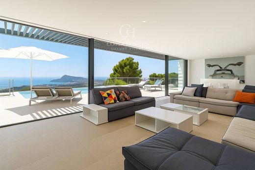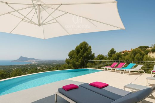 Villa contemporánea en venta en Altea la Vella, con vistas infinitas al mar y diseño arquitectónico de vanguardia~~Con el sello de distinción de COSTA HOUSES Luxury Villas S.L ®, galardonada internacionalmente y especialista en propiedades exclusivas en la Costa Blanca, presentamos VILLA ALTHEA, una creación arquitectónica que combina pureza de líneas, materiales nobles y una ubicación privilegiada frente al Mediterráneo.~~Su fachada blanca, limpia y geométrica, contrasta con los tonos cálidos de la piedra natural y el cristal transparente de las barandillas, proyectando una estética minimalista y a la vez profundamente mediterránea. Los grandes ventanales de suelo a techo permiten que la luz inunde cada rincón, borrando los límites entre interior y exterior.~~El salón principal de 119 m², abierto y diáfano, acoge zona de estar, comedor y cocina americana con isla central. El interior se viste con tonos neutros, superficies pulidas y detalles de madera, logrando un ambiente elegante y funcional, donde la modernidad se percibe acogedora y no fría. Desde aquí, la continuidad visual se prolonga hacia la terraza panorámica y la piscina infinita, que parece flotar sobre la bahía de Altea.~~Los cinco dormitorios en suite, cada uno con vestidor y baño privado, ofrecen vistas directas al mar y se diseñan como refugios íntimos donde predominan la calma y la serenidad. El patio interior, corazón verde de la vivienda, aporta frescor y una sensación orgánica que dialoga con la modernidad de la arquitectura.~~En el exterior, más de 190 m² de terrazas con diferentes niveles, zonas chill-out y espacios cubiertos invitan a disfrutar del clima mediterráneo. La orientación suroeste garantiza luminosidad continua y puestas de sol que tiñen el cielo de colores cálidos, creando un espectáculo natural cada tarde.~~Construida en 2022, la villa está equipada con calefacción por suelo radiante, aire acondicionado, domótica avanzada, puerta blindada, sistemas de seguridad y videoteléfono. Un garaje cerrado para tres vehículos, bodega y ascensor interior completan esta residencia de excelencia.~~VILLA ALTHEA es la perfecta fusión entre arquitectura contemporánea, diseño mediterráneo y una localización exclusiva en Altea la Vella, a solo minutos del golf, la playa y el encanto histórico del casco antiguo de Altea.~~Una residencia concebida para quienes buscan lo extraordinario, donde cada espacio transmite calma, sofisticación y la belleza eterna del mar.