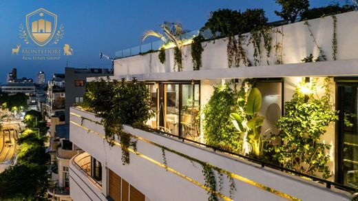 El apartamento está ubicado a solo unos minutos a pie de la playa, el mercado del Carmelo, el bulevar Rothschild, el teatro Habima, la vibrante calle Shenkin, Neve Tzedek y los principales destinos gastronómicos y cafeterías de la ciudad. Se encuentra en un edificio histórico bellamente restaurado de 1922, con un espectacular estilo ecléctico. El edificio fue cuidadosamente renovado y preservado en 2021. Se añadieron pisos adicionales sobre la estructura clásica, y en la cima se encuentra esta joya inmobiliaria: un penthouse lujoso y refinado que ocupa una planta entera de aproximadamente 140 m² (con opción de adquirir 45 m² adicionales por 6 millones de NIS).