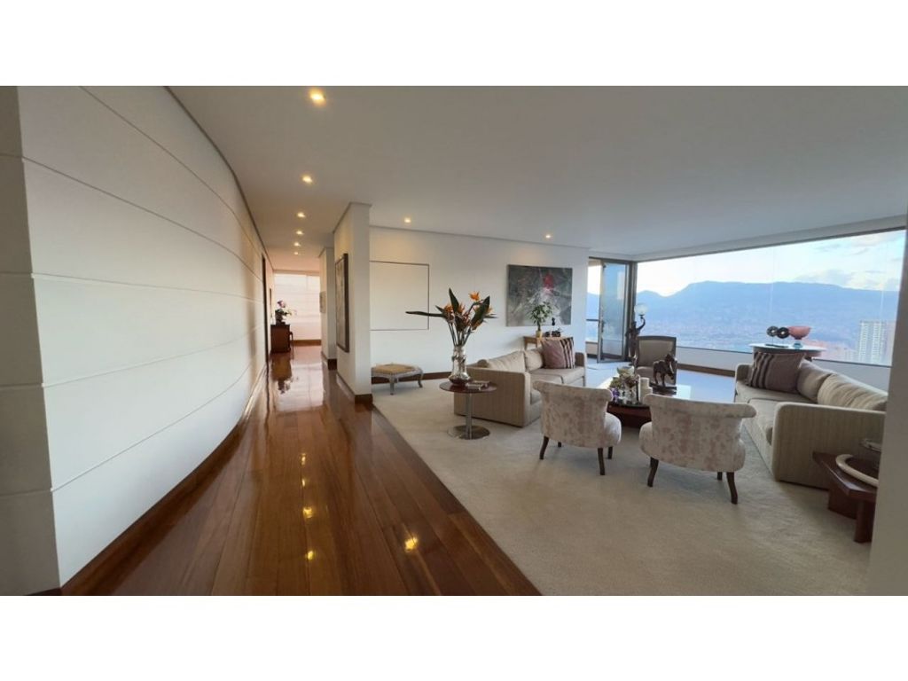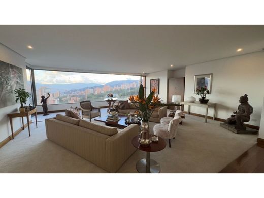 Apartamento en venta - Poblado Exclusivo apartamento con vista 360 a toda la ciudad, con espacios unicos✨ Un solo apartamento por piso - Area: 450 m2 - 4 habitaciones, todas con baño, vestier y aire acondicionado - Habitación del servicio - Baño social - Sala de estar - Oficina - Zona de ropas independiente - Hall de alcobas - Altura: 2.70- 6 parqueaderos - 2 cuartos útiles Inversión COP. $3.500.000.000USD. $898.000Pd: Valor en dólares (USD) sujeto a cambio por aumento o disminución del precio del dólar Poblado, Medellín