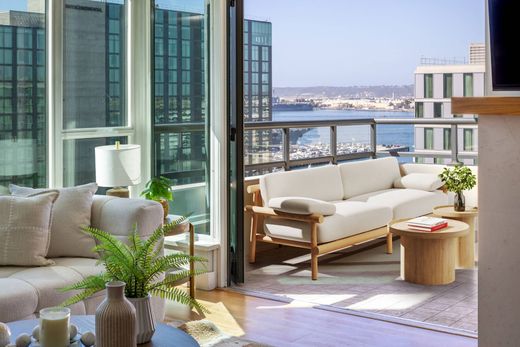 Las vistas panorámicas a la bahía y al horizonte son la pieza central de este lujoso condominio en el icónico Grande South, en Millionaire's Row. El diseño abierto luce amplios ventanales en cada habitación que inundan el espacio de luz natural y enmarcan vistas panorámicas del puerto y el centro. La cocina, hecha a medida, cuenta con encimeras de granito, electrodomésticos de acero inoxidable, vinoteca y asientos que se integran a la perfección con la sala de estar y el comedor. Salga a su balcón privado, idealmente ubicado para contemplar las puestas de sol sobre el agua. El dormitorio principal, con baño en suite, cuenta con tocador doble, bañera profunda y ducha a ras de suelo. Un tercer dormitorio opcional ofrece la flexibilidad de crear una increíble oficina en casa o un espacio creativo, donde podrá trabajar mientras disfruta de las vistas de la bahía y las luces de la ciudad. Las comodidades estilo resort incluyen una piscina de 24 metros, jacuzzi, baño de vapor, sauna, gimnasio recientemente remodelado, conserje, seguridad 24/7, zona de barbacoa, suite de invitados y espacio seguro para guardar bicicletas. También incluye dos plazas de aparcamiento subterráneo contiguas, una plaza adicional para motocicletas y un trastero cerrado. Con una puntuación Walk Score de 95, esta casa está rodeada de lo mejor del centro. Little Italy, el Distrito Marina, el Parque Waterfront, Seaport Village y el Embarcadero se encuentran a poca distancia a pie, mientras que el Gaslamp Quarter, el Rady Shell y el Petco Park están a un corto viaje en tranvía. Esta es la personificación de la vida en el centro de San Diego, con infinitas opciones para comer, ir de compras y entretenerse.