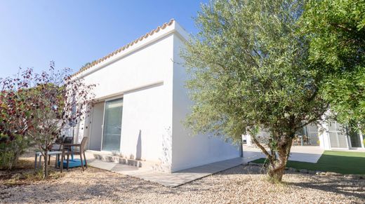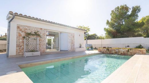 Chalet moderno con casa de invitados, jardín y piscina – Sa Ràpita, Mallorca~En una de las zonas más tranquilas y privadas de Sa Ràpita, se encuentra este elegante chalet de estilo contemporáneo, construido en 2019 sobre una amplia parcela de aproximadamente 1.150 m².~Rodeado de un cuidado jardín mediterráneo, la propiedad destaca por su arquitectura moderna, espacios diáfanos y una atmósfera de serenidad.~La vivienda principal, de unos 186 m², ofrece un salón-comedor muy luminoso con techos altos y vigas vistas, integrado con una cocina moderna totalmente equipada.~Dispone de tres dormitorios dobles con armarios empotrados, tres baños (dos en suite) y un despacho ideal para teletrabajo.~Los materiales de alta calidad, el aislamiento térmico y acústico, los suelos porcelánicos y la climatización por aerotermia garantizan confort y eficiencia energética durante todo el año.~En el exterior, amplios porches y terrazas cubiertas invitan al descanso y a disfrutar del clima mallorquín. El jardín está perfectamente diseñado con césped y vegetación autóctona, mientras que la piscina con cascada aporta un toque de elegancia y frescura.~La propiedad incluye además una cómoda casa de invitados de unos 30 m², con salón-dormitorio y baño independiente, ideal para familiares, amigos o para uso como espacio de trabajo privado.~Ubicada en Sa Ràpita, a pocos minutos del puerto deportivo y de la paradisíaca playa de Es Trenc, esta vivienda combina el estilo de vida mediterráneo con la máxima privacidad.~El acceso a Palma y al aeropuerto se realiza en apenas 30 minutos en coche, lo que la convierte en una residencia ideal tanto para vivir todo el año como para disfrutar de vacaciones de lujo en el sur de Mallorca.