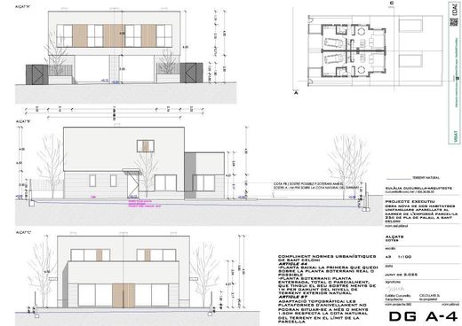 Esta nueva promoción nos tiene el corazón robado, mires donde mires, cada detalle está cuidado, todo pensado para que sus ocupantes obtengan una máxima calidad de vida y nos explicamos:~En primer lugar la situación, dentro del casco urbano, próximo a comercios y servicios, a 12 minutos a pie del centro.~Se trata de dos casas aparejadas solos por un lado, de forma que a sus 3 fachadas libres se ubican ventanas que dan al jardín donde destaca la piscina particular de 5 metros de alargada por 2,5 metros de anchura.~La planta baja, de 75 m² dispone de un garaje amplio de 24,77 m² convertible en una gran habitación por aquellos que la escala sea un problema, un baño cumplido y uno amplía sala - cocina - comedor de 36,50 m².~La planta primera dispone de 3 habitaciones grandes, una de ellas una suite con baño y vestuario , 2 baños y una terraza.~Disponen de aerotermia que garantizan el mínimo consumo de calefacción, aire acondicionado por conducto y pre-instalación de placas solares, no dejarás huella nergética.~Acabados inmejorables, ventanas de aluminio oscilovatentes con rotura de puente térmico, persianas automáticas, puertas interiores lacadas en blanco, mamparas en baños, fibra óptica a todos los aposentos, cocina vitrocerámica de inducción, campana decorativa, banco de silestone~Se terminarán en verano del 2026, ahora es el momento de comprarla y poder incidir en los cambios que pidas para personalizarla a tu gusto.