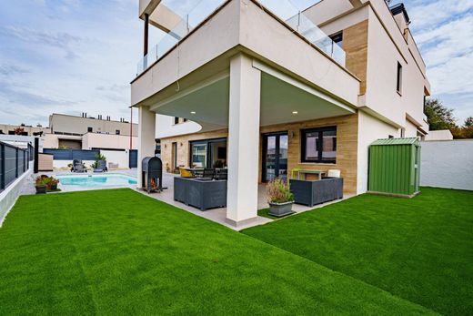 No dejes pasar esta oportunidad única para conocer una espectacular casa independiente, diseñada con un estilo moderno que destaca por sus líneas arquitectónicas elegantes.~Con una superficie construida de 201 m2 distribuidos en dos plantas sobre una amplia parcela de 350 m2, este hogar te hará sentir enamorado desde el primer momento. ~~Al entrar, serás recibido por un espacio diáfano que alberga un salón comedor contemporáneo y una maravillosa cocina americana equipada con mesa isla ideal para compartir momentos inolvidables. La planta baja también cuenta con habitación separada mediante armario empotrado y baño completo dotado de ducha; además, podrás acceder a la impresionante zona exterior donde se encuentra la piscina rodeada de césped artificial y un acogedor porche perfecto para disfrutar del verano al aire libre. ~En la primera planta hallarás otro baño completo junto a tres cómodas habitaciones equipadas con armarios empotrados: entre ellas se incluye la matrimonial, que ofrece su propio vestidor privado así como acceso directo a un elegante cuarto de baño equipado con bañera hidromasaje para tu relajación total. Además tendrás acceso a una gran terraza idónea tanto como balcón o área adicional durante los meses cálidos gracias al diseño inteligente del inmueble. ~Esta vivienda no solo es hermosa sino eficiente energéticamente ya que dispone de placas solares instaladas y aerotermia con calefacción por suelo radiante, garantizando confort todo el año mientras cuidas tu economía doméstica. ~~Situada en Villalbilla –un municipio estratégicamente ubicado cerca de Madrid– gozarás de excelente comunicación vial hacia Alcalá Henares vía transporte público frecuente permitiéndote desplazarte sin inconvenientes; aquí encuentras todos los servicios necesarios incluyendo supermercados, farmacias, veterinarias, centros educativos de todos los niveles (infantil/principal/secundaria). ~~No lo dudes, y ven a visitarla para terminar de enamorarte.~~Pis-Pas-Inmobiliaria está registrada bajo N.º000941/24 ante Registro Agentes Inmobiliarios(RAIN) Comunidad Madrid.